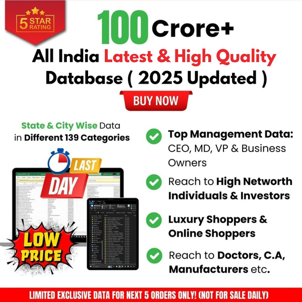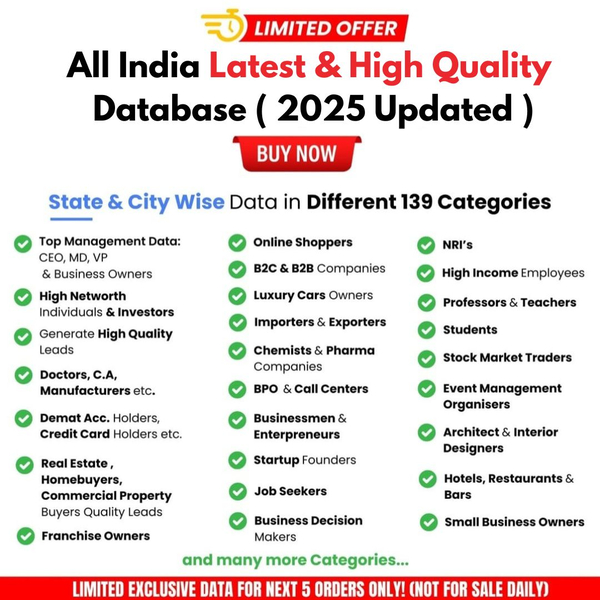 ✅ भुगतान के बाद आपको 5 मिनट के अंदर ईमेल पर डेटाबेस मिल जाएगा।